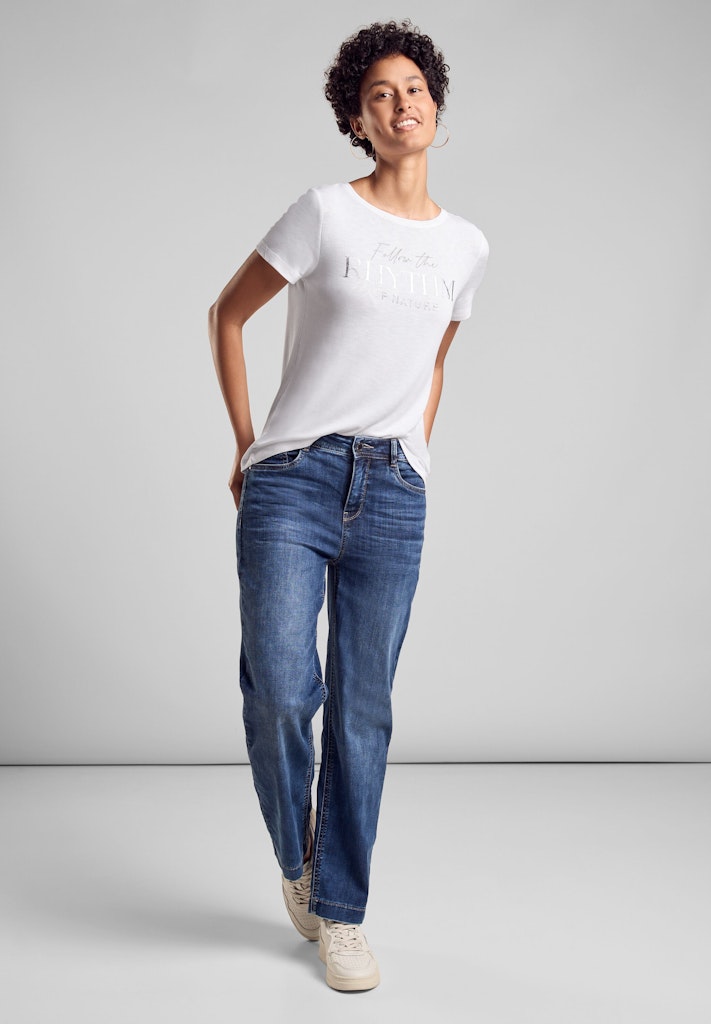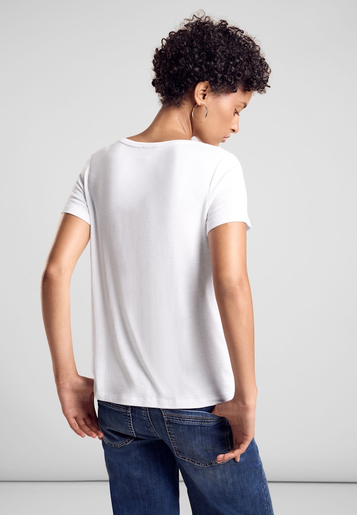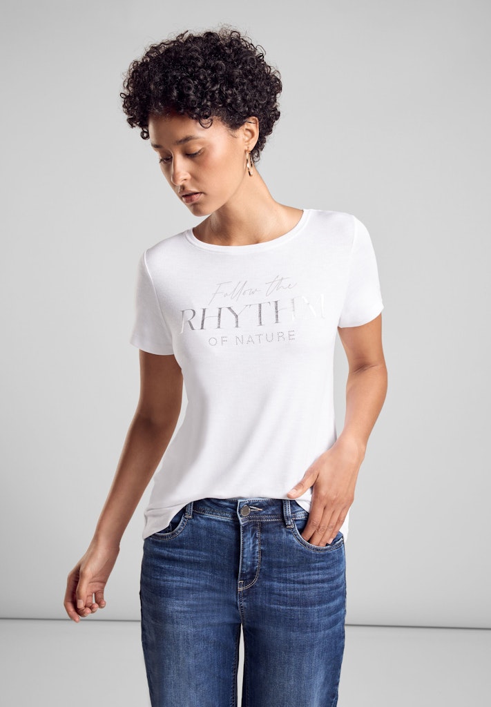 Dieses leichte Sommershirt von Street One für Damen kommt mit Rundhalsausschnitt und Kurzarm lässig und sommerlich daher, während das schimmernde Wording Akzente setzt. Mit dem leichten Tragegefühl eignet es sich ideal für warme Sommertage.