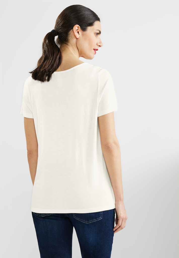 Einfach traumhaft! Feminines Damen T-Shirt von Street One in Unifarbe. Ein trendstarker Look in einem angenehmen Material, das sich einfach nur gut anfühlt. Der V-Ausschnitt bekommt mit einem Spitzendetail einen besonderen Hingucker.