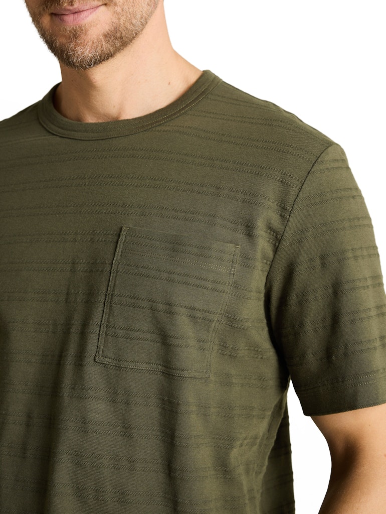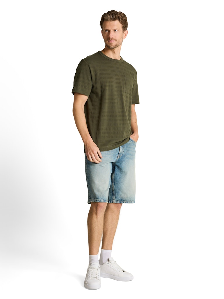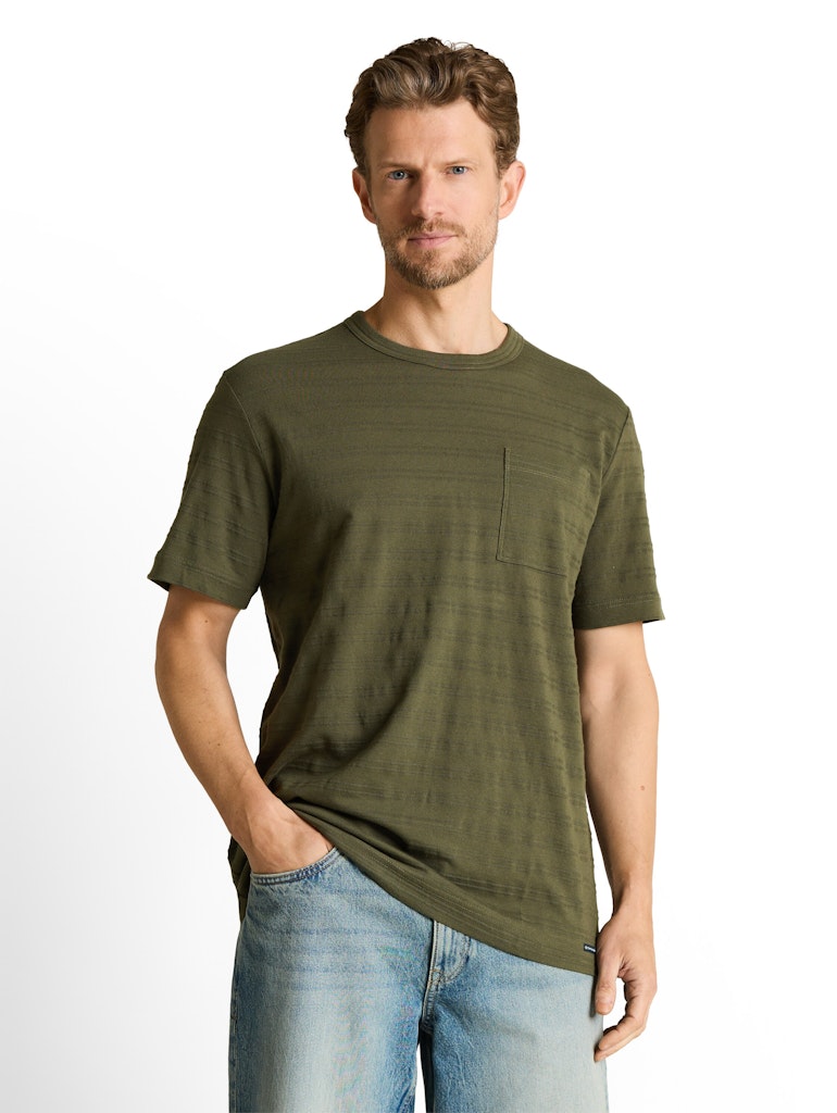 Strukturiertes T-Shirt mit Streifen und aufgesetzter Brusttasche. Aus einem Single-Jersey-Stoff aus Baumwolle.