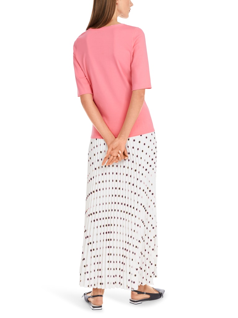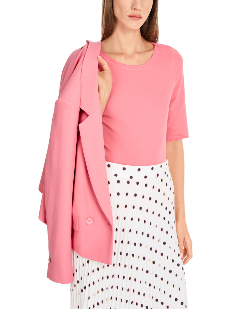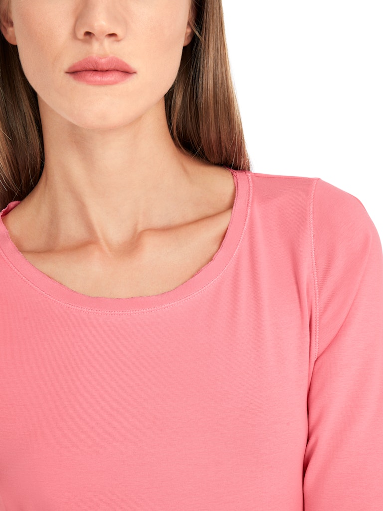 T-Shirt mit halblangem Ärmel|Ein unkompliziertes Basic mit Tragekomfort ist dieses figurnah sitzende T-Shirt. Dafür sorgt der angenehme Material-Mix aus feiner Baumwolle mit Elasthan. Der weite Rundhals kommt mit offener Saumkante, die halblangen Ärmel lassen sich leger hochschlagen.|Figurnaher Sitz|Turn-up-Ärmel|Offene Saumkante|Aus feinem Baumwolljersey|Das Model ist 179 cm groß und trägt N3/38.