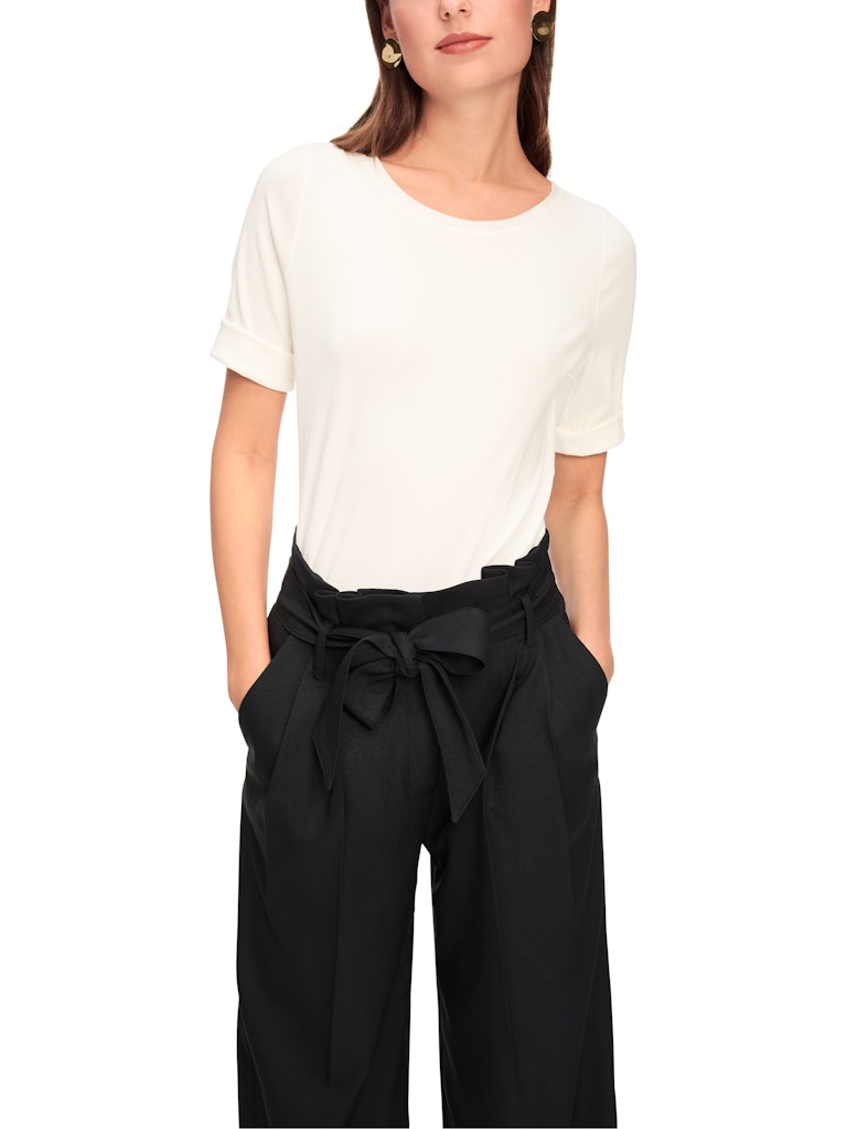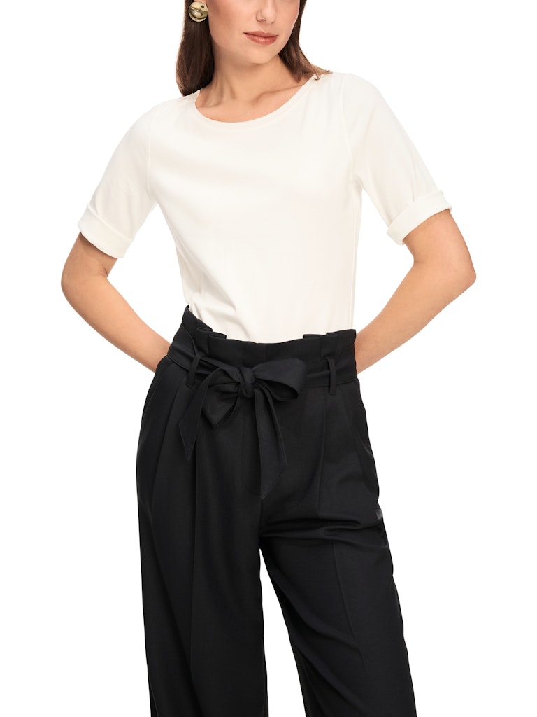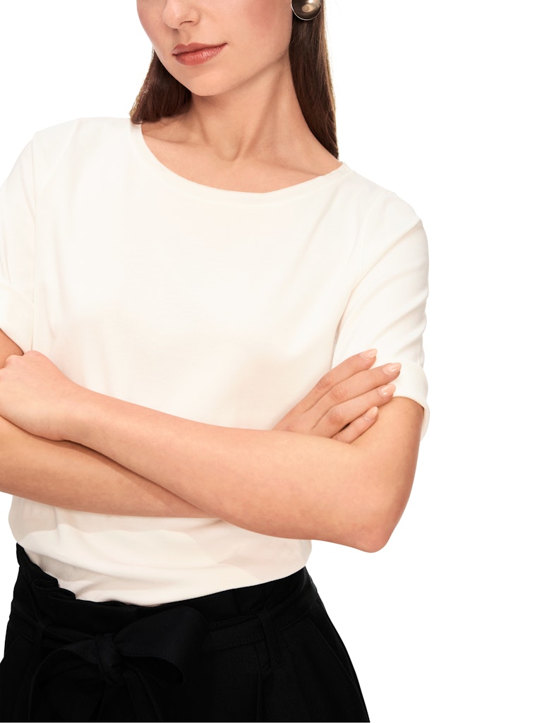 T-Shirt mit halblangem Ärmel|Ein unkompliziertes Basic mit Tragekomfort ist dieses figurnah sitzende T-Shirt. Dafür sorgt der angenehme Material-Mix aus feiner Baumwolle mit Elasthan. Der weite Rundhals kommt mit offener Saumkante, die halblangen Ärmel lassen sich leger hochschlagen.|Figurnaher Sitz|Turn-up-Ärmel|Offene Saumkante|Aus feinem Baumwolljersey|Das Model ist 179 cm groß und trägt N3/38.