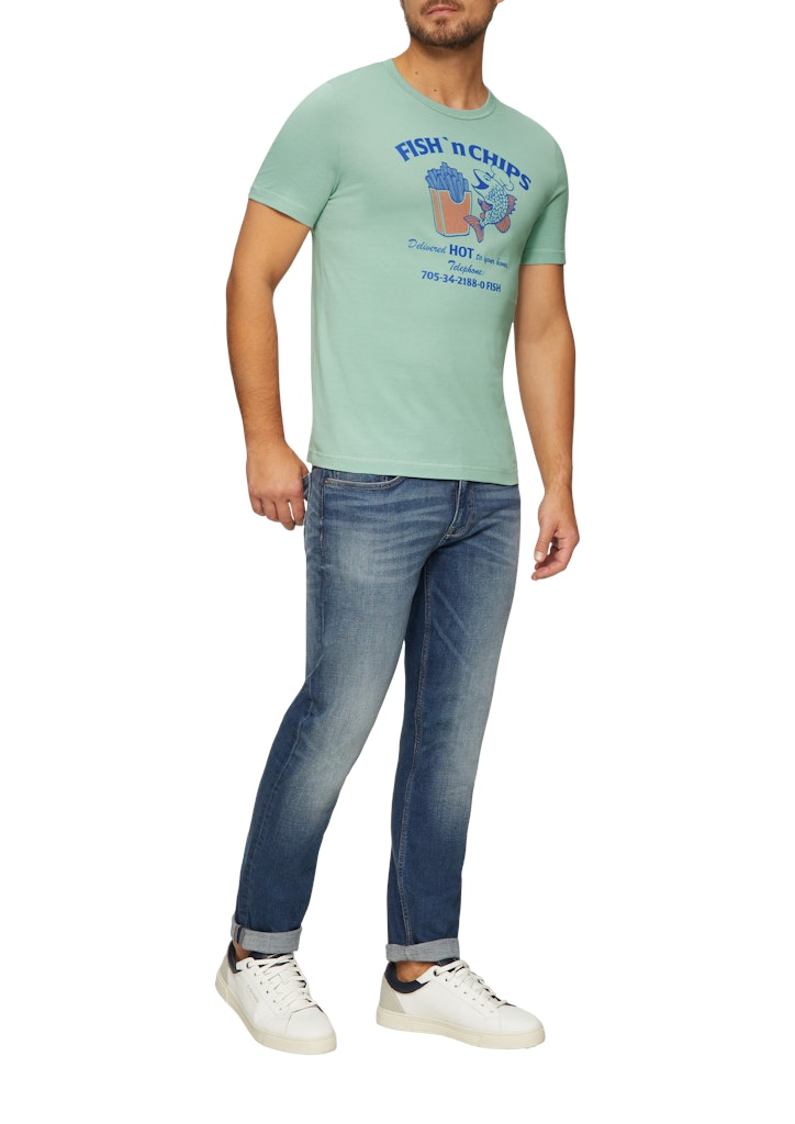 Oberstoff: 100% Baumwolle; Kragen: 95% Baumwolle, 5% Elasthan