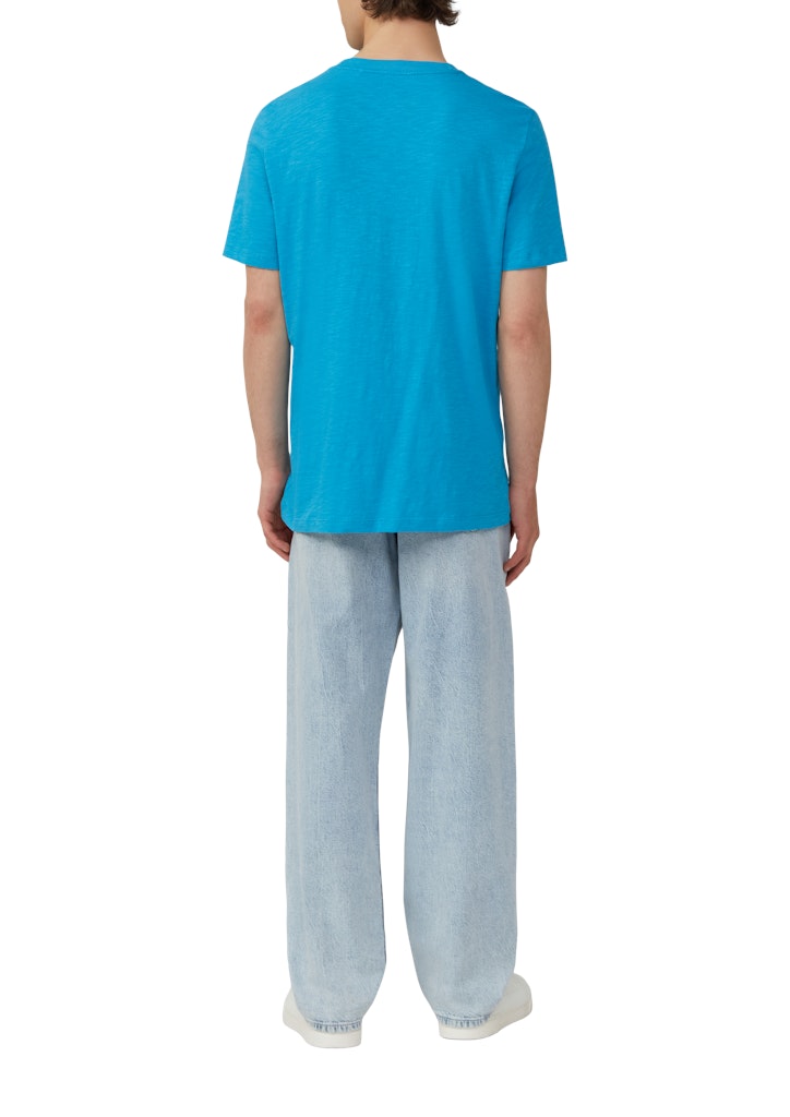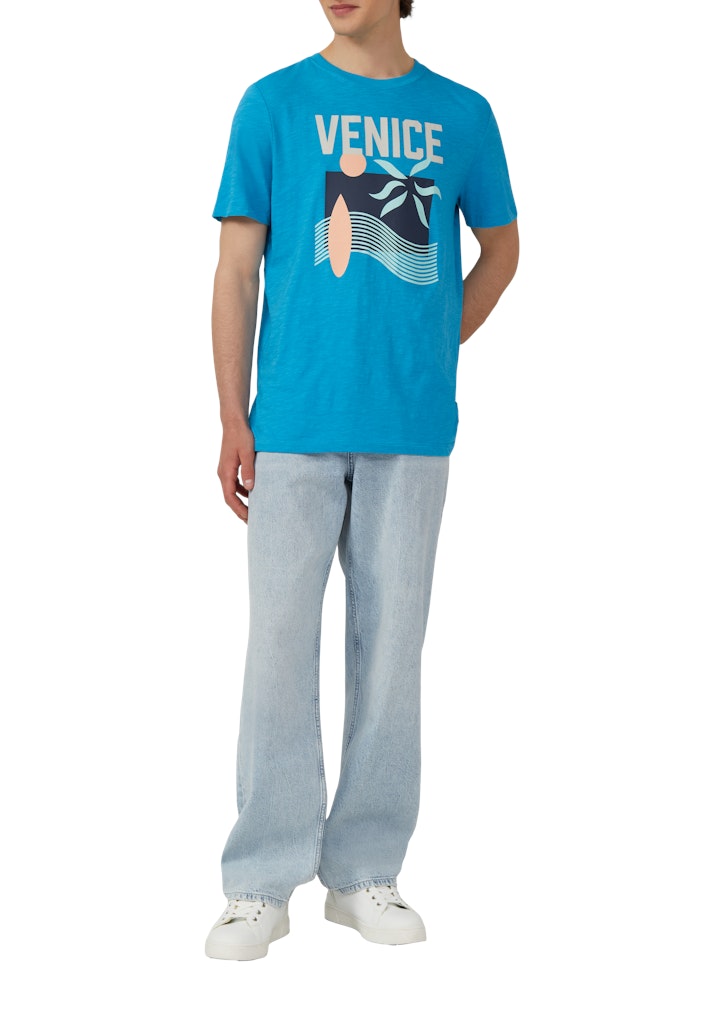 Baumwoll-T-Shirt mit Frontprint und Flammgarnstruktur