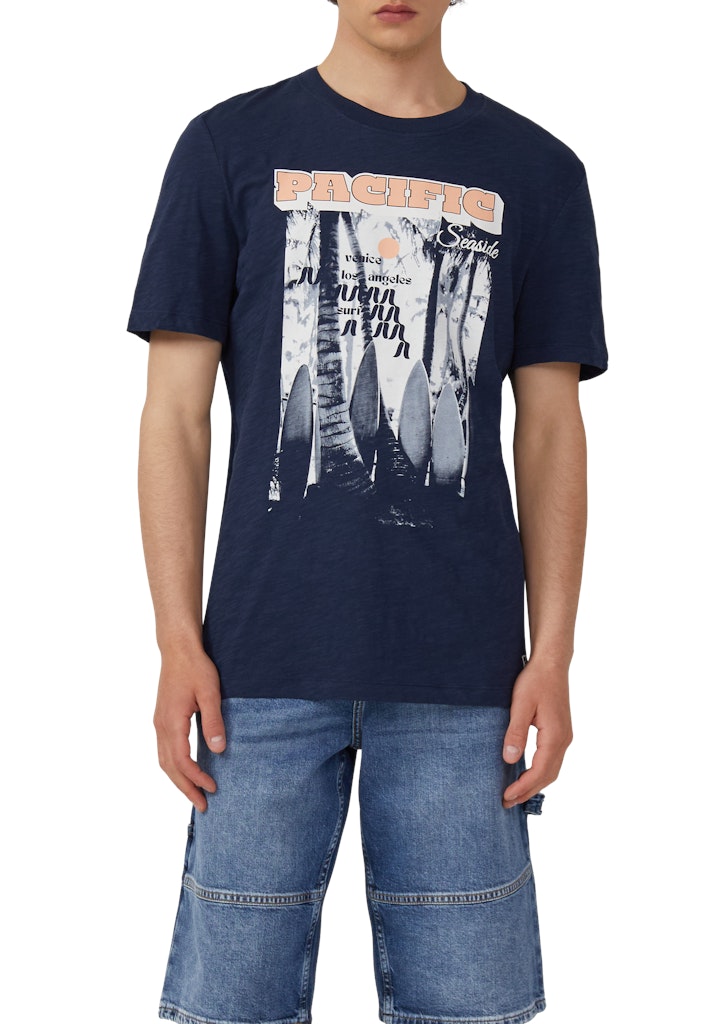 Baumwoll-T-Shirt mit Frontprint und Flammgarnstruktur