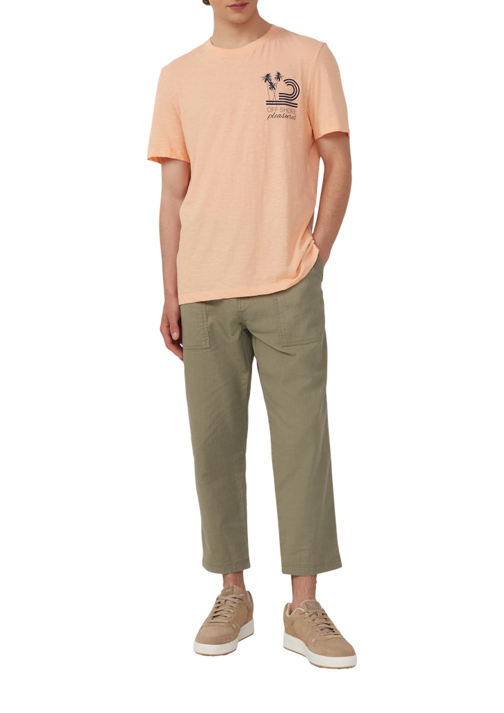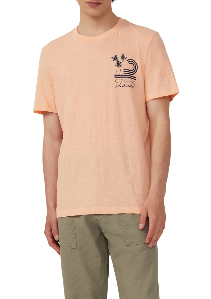 Baumwoll-T-Shirt mit Frontprint und Flammgarnstruktur