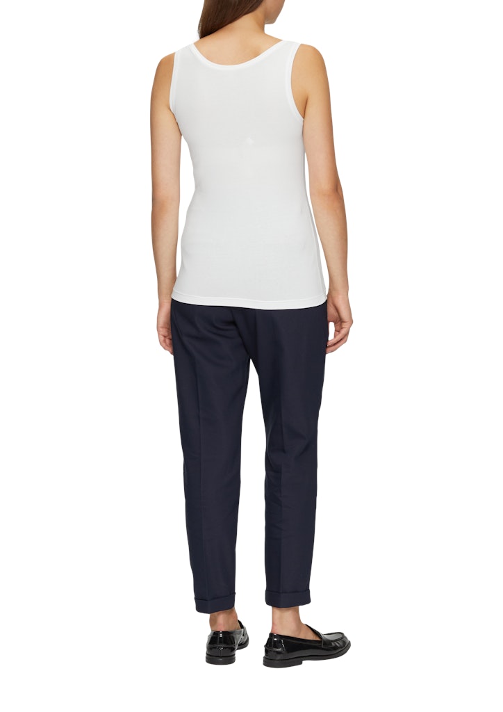 Dein neues Lieblingsstück für heiße Tage! Dieses ärmellose T-Shirt aus elastischem Baumwolljersey schmiegt sich angenehm an deinen Körper. Der schmale Schnitt betont deine Silhouette und lässt sich vielseitig stylen. Kombiniere es mit Shorts für einen lässigen Beach-Look oder mit einem Blazer fürs Büro. Ein echtes Allround-Talent für deinen Sommer-Kleiderschrank!