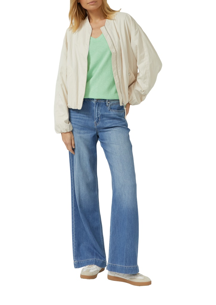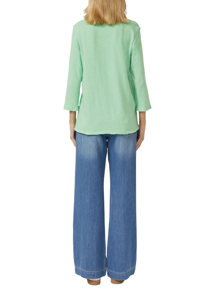Jersey-T-Shirt mit Flammgarnstruktur und gerundetem Saum
