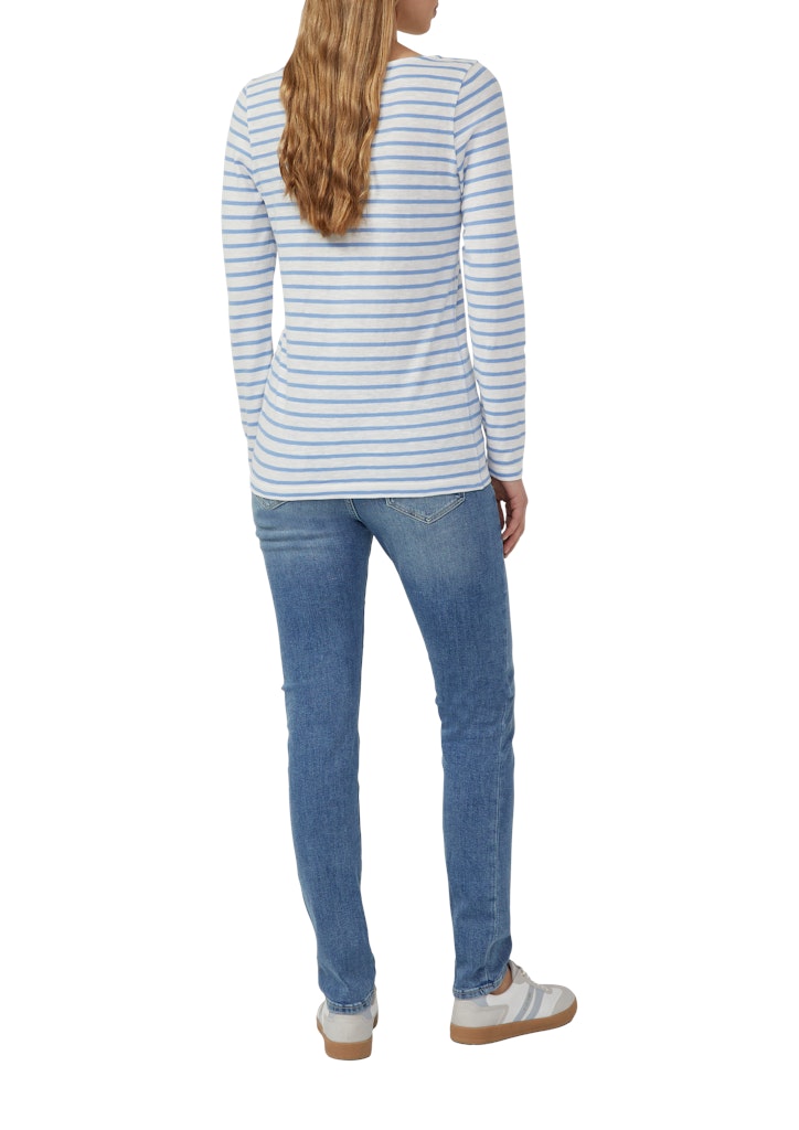 Gestreiftes Langarmshirt aus Flammgarm mit U-Boot-Ausschnitt