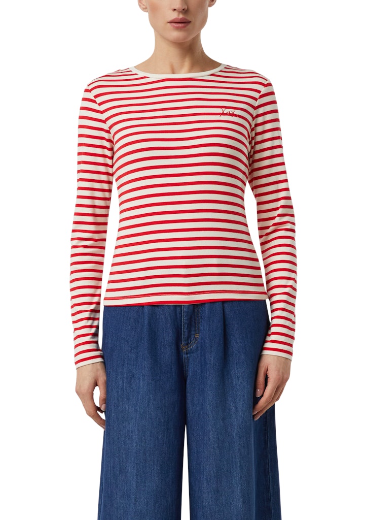 Gestreiftes Langarmshirt aus Viskosemix mit Stick Motiv | Valentine´s Day