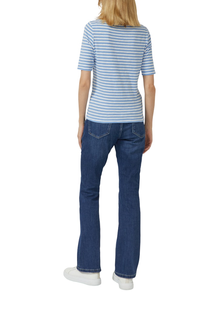Gestreiftes Halbarmshirt im Slim Fit mit Flammgarn