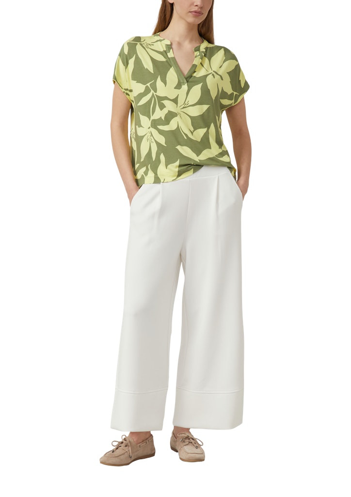 Gemustertes Jersey-T-Shirt mit V-Ausschnitt