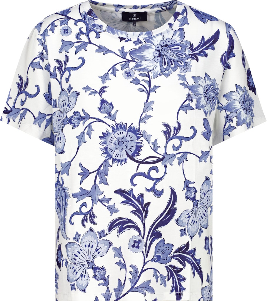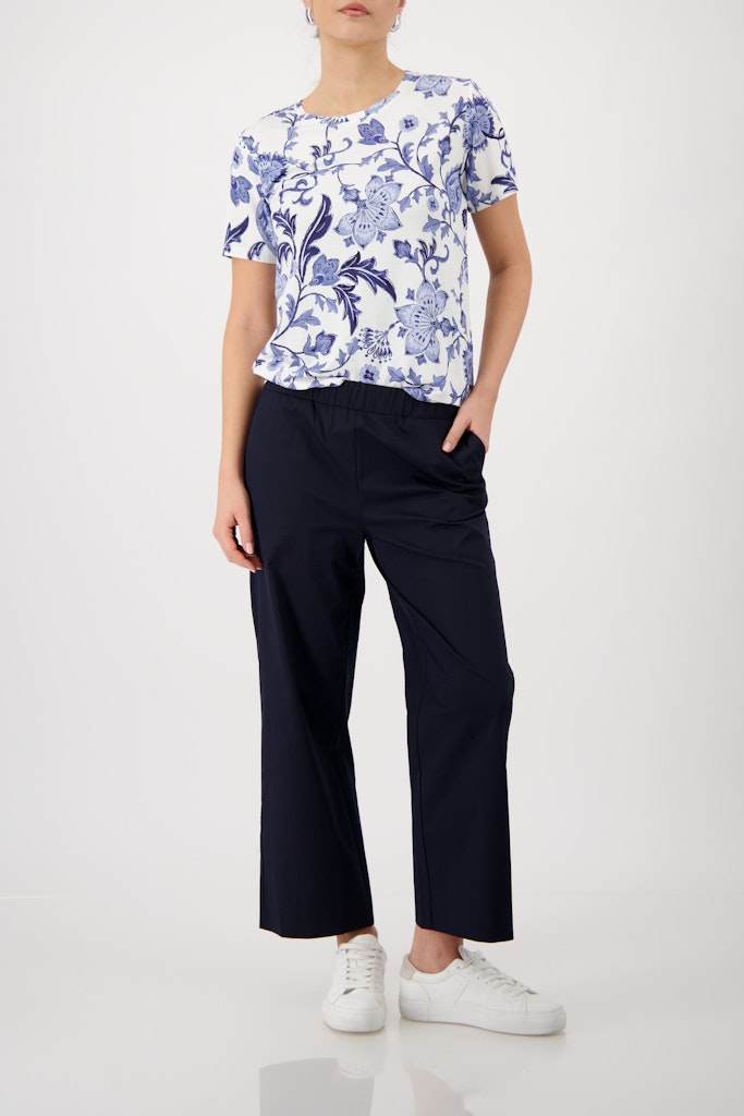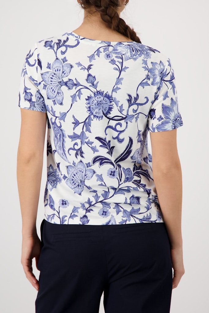 Dieses fließende T-Shirt aus elastischer Viskose begeistert mit einem Blumenmuster, Rundhalsausschnitt und seitlichen Schlitzen.