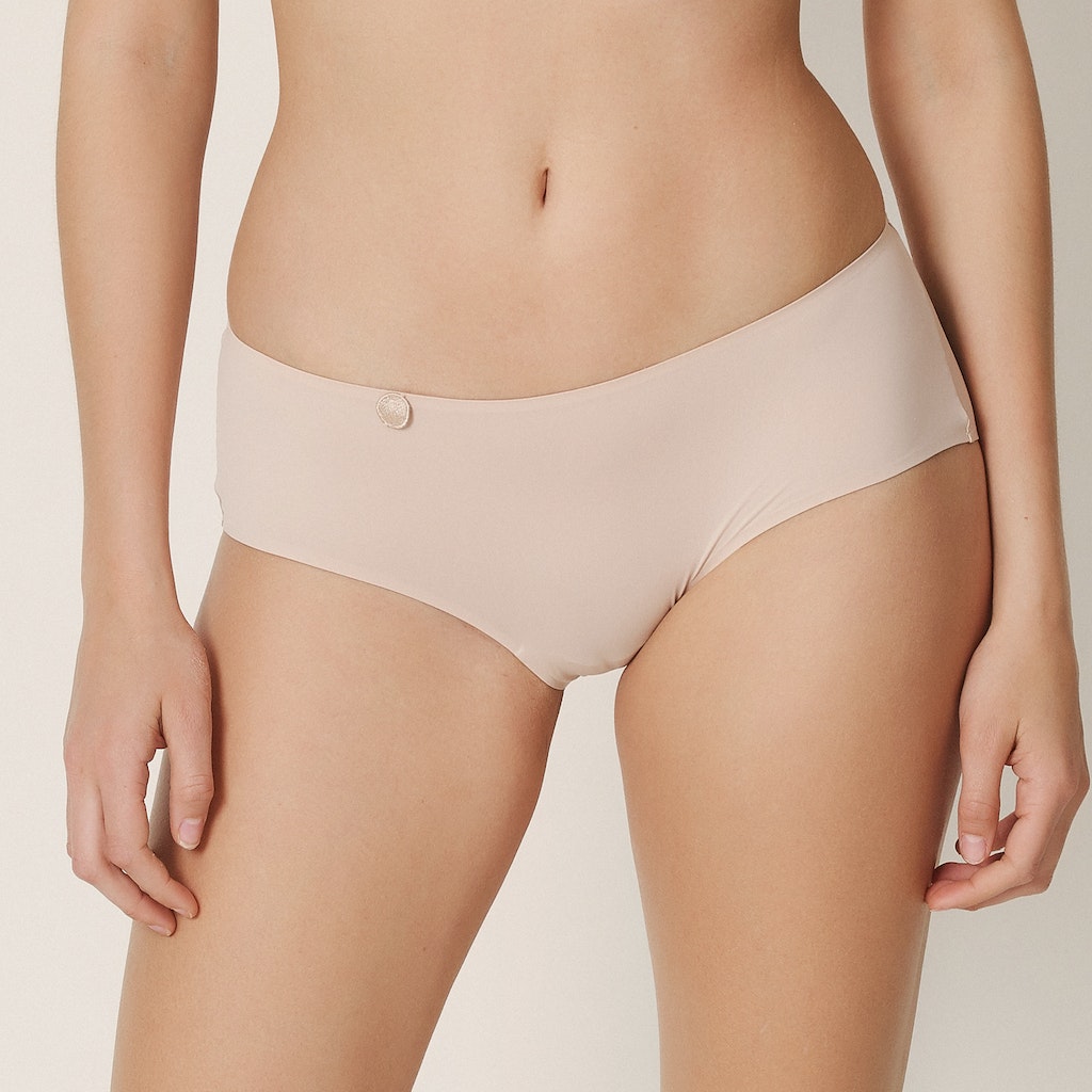 Die thermoverschweißten Shorts sind nahtlos verarbeitet. Der federleichte Stoff umschließt den Po sehr schön. Sehr komfortabel. Zeichnet nicht ab.