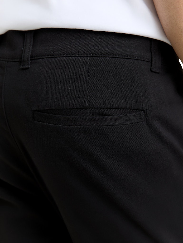 Klassische Chinohose mit seitlichen Eingriffstaschen vorne und Paspeltaschen hinten. Aus einem pflegeleichten Baumwollstoff mit leichtem Stretch-Anteil.