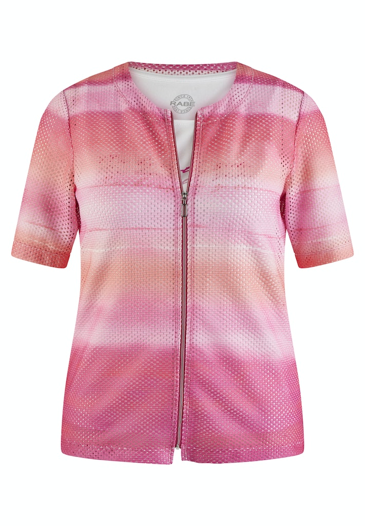 Dieses Twinset lässt wirklich keine Wünsche offen. Es besteht aus einer T-Shirt-Jacke in Netz-Optik und einem Top aus Viskose-Mix. Die Jacke ist mit einem zarten Reißverschluss versehen und lädt somit zu einem Blick auf das filigrane Wording des Tops ein. Kombinieren Sie es zu einer Jeans und Sneakern.