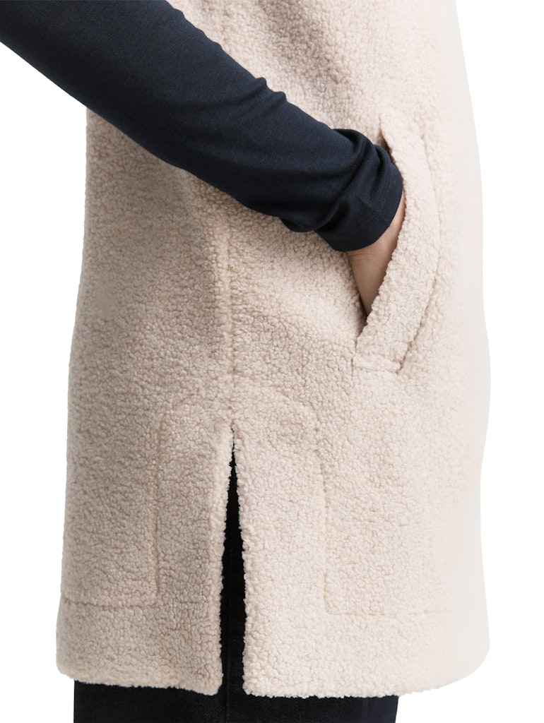 * Weste mit Kapuze, seitlichen Eingriffstaschen und Seitenschlitzen für mehr Bewegungsfreiheit. Aus einem besonders weichen Teddyfell für ein warmes Tragegefühl.