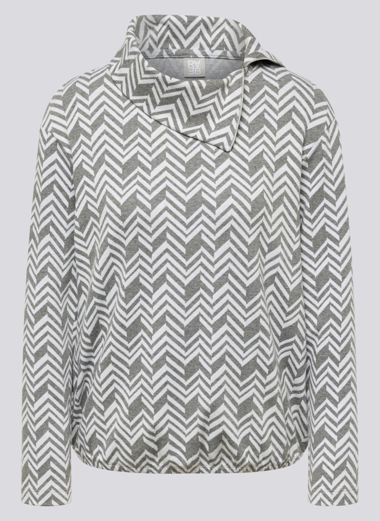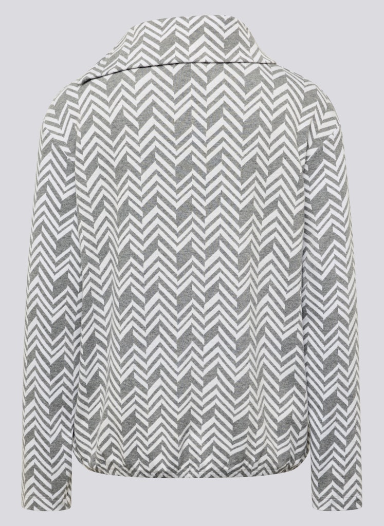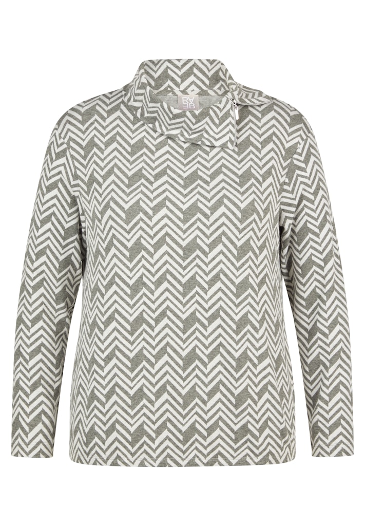 Das sportive Sweatshirt überzeugt mit einem markanten Allover-Fischgrätmuster in gedeckten Farben. Der hohe Kragen mit schrägem Reißverschluss verleiht dem Design eine moderne Note, während die leicht elastische Qualität für hohen Tragekomfort sorgt. Ein Tunnelzug im Saum erlaubt die individuelle Weitenregulierung. Angeschnittener Reißverschlusskragen. Grafisches Allover-Fischgrätmuster. Tunnelzug mit Stopper im Saum. Elastische Sweatqualität. Pflegeleicht und bequem.
