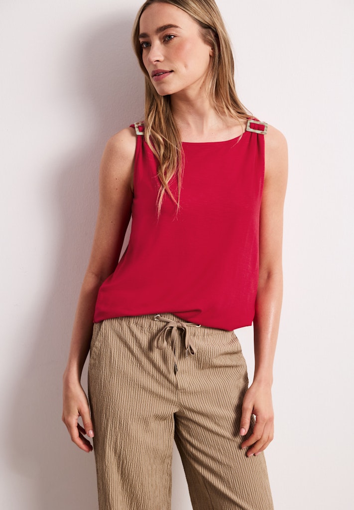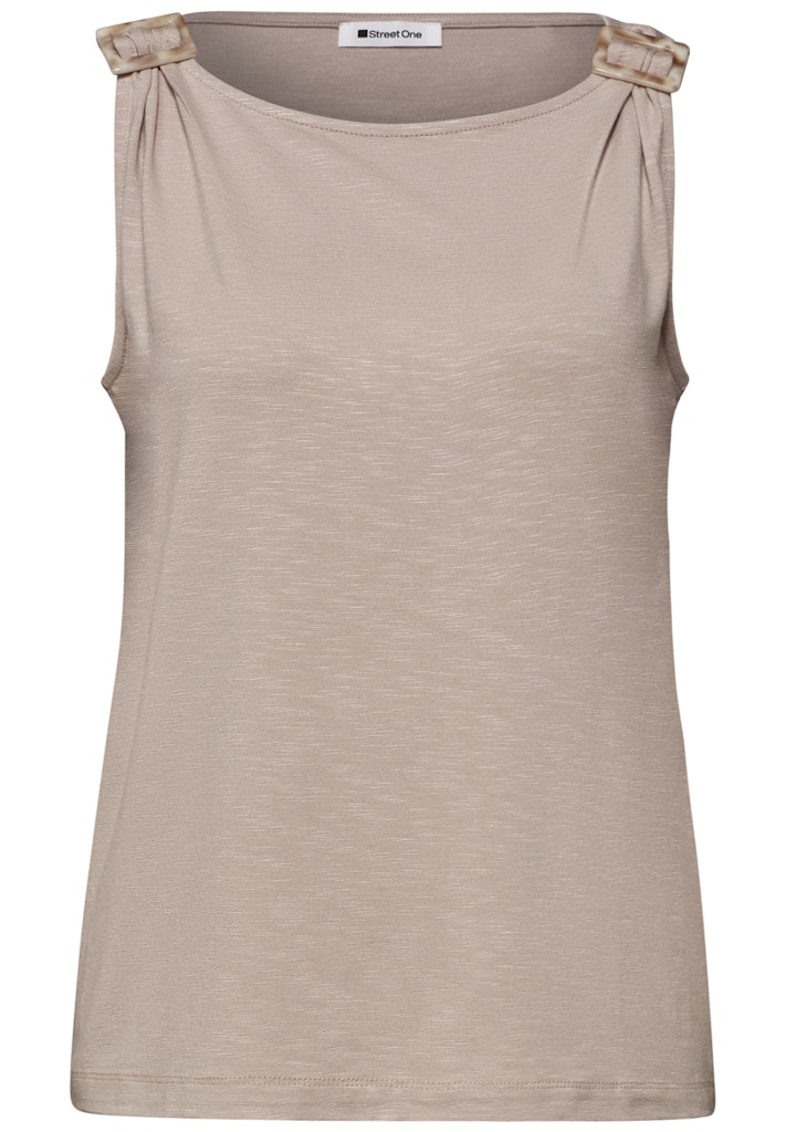 Dieses Top von Street One für Damen überzeugt mit einem cleanen Design und modernem Detail. Der U-Boot-Ausschnitt wirkt zeitlos, während die Träger mit Schnallendetail dezente Akzente setzen. Die Viskosequalität mit Stretchanteil fühlt sich angenehm weich an und bietet hohen Komfort. Ein schlichtes, vielseitiges Top für entspannte Casual-Looks. Trägertop Rundhalsausschnitt Ärmellos Unifarbe Softe Jerseyqualität aus Viskose mit Stretchanteil Sommerliches Flair Schnallendetail an den Trägern Im Beutel waschen Material: 95% Viskose, 5% Elasthan