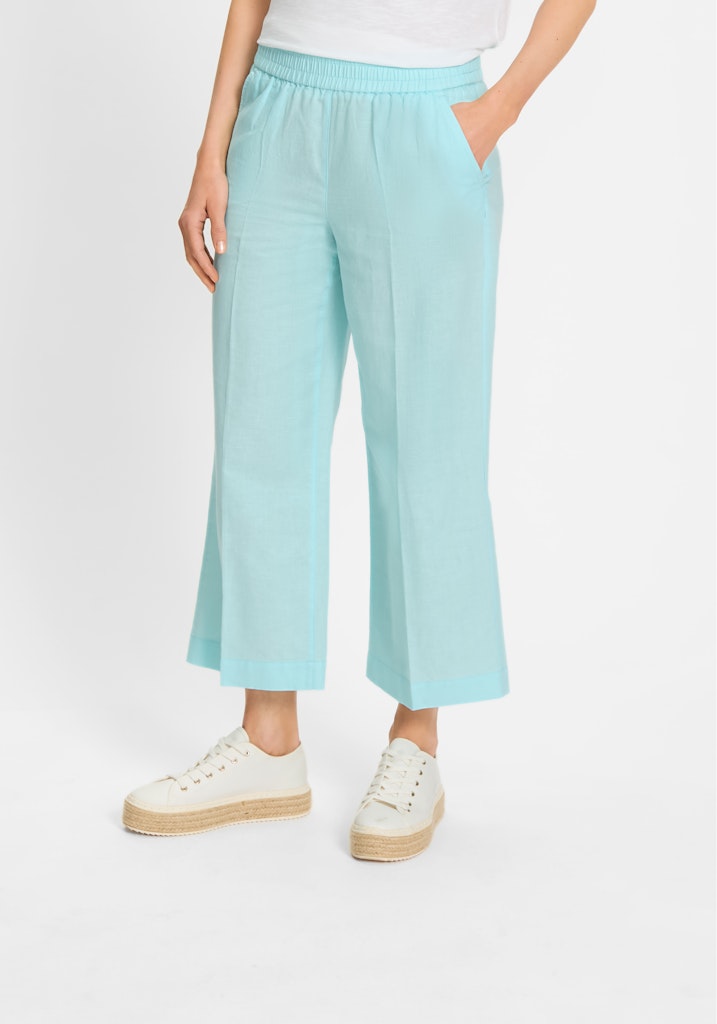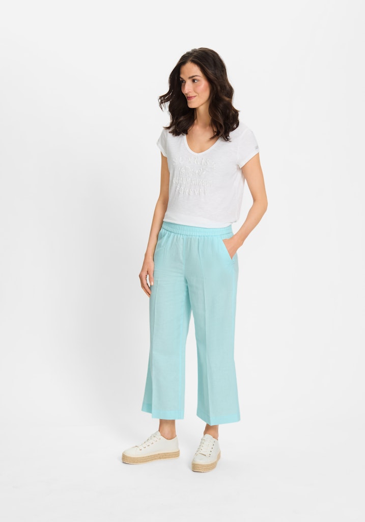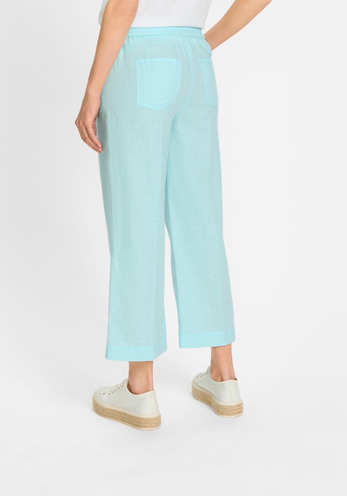 Die Hose in der Olsen-Passform "Anna" ist der Inbegriff von Eleganz und Komfort. Mit einer erhöhten Leibhöhe, einem komfortablen Oberschenkel und einer leicht ausgestellten Fußweite bietet sie eine schmeichelhafte Passform. Die seitlichen Eingrifftaschen und die aufgesetzten Taschen auf der Rückseite verleihen der Hose einen modernen Touch und praktische Funktionalität. Gefertigt aus einem exquisiten Mix aus Superleinen und Baumwolle vereint sie stilvolle Leichtigkeit mit nachhaltiger Raffinesse. Länge ca. 26 Inch