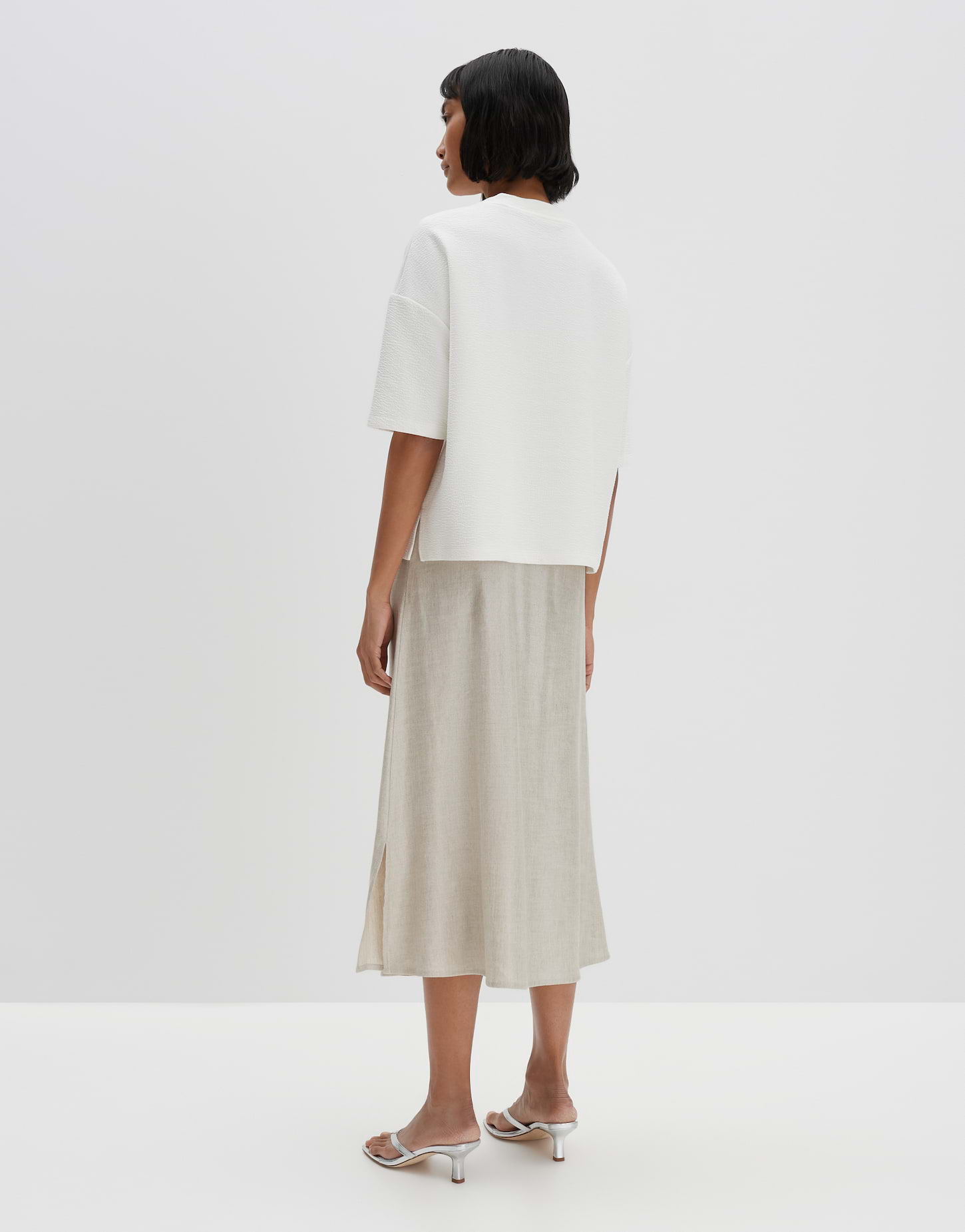 lockere Passform, gerader Schnitt, leicht verkürzt geschnitten, überschnittene Schulter mit Kurzarm, hoher Rundhalsausschnitt, Rückenlänge ca. 56 cm bei Größe 36, Model Größe 176 cm - trägt Größe 36, Sweatware, strukturierte Oberfläche, weicher Griff, formstabil, lange Schlitze in den Seiten