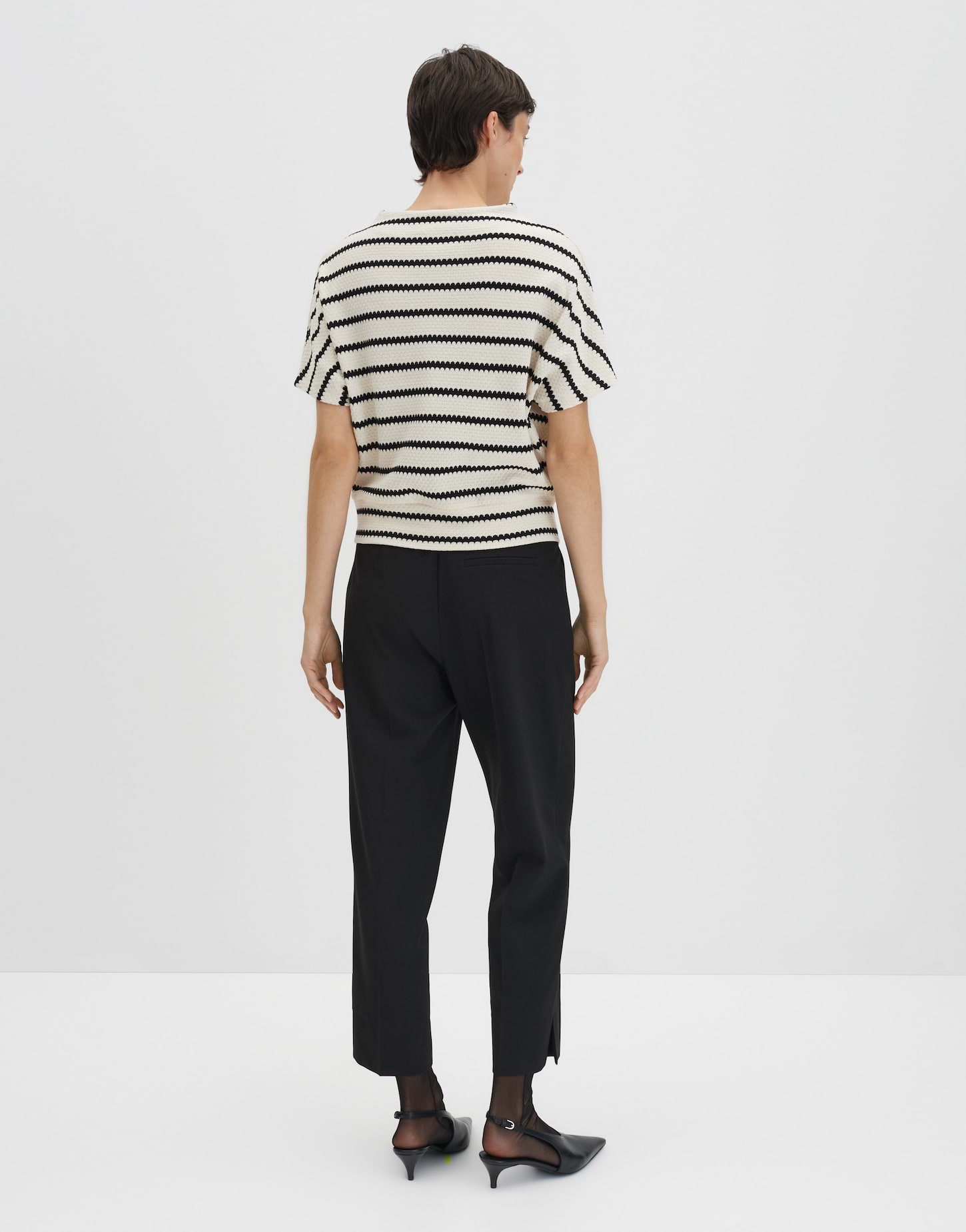oversized Passform, schmal zulaufend, leicht verkürzt geschnitten, überschnittener Kurzarm, Funnel Neck, Rückenlänge ca. 54 cm bei Größe 36, Model Größe 176 cm - trägt Größe 36, Sweatware, Strickoptik, weicher Griff, weich fließender Fall, schmales Bündchen