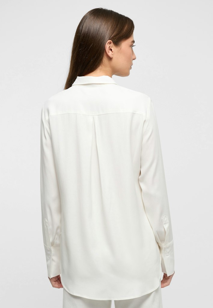 Der Hemdkragen, die extra lange Manschette, die eingelegte Falte an der Rückenpasse und die Rückenlänge von 72 cm sind charakteristisch für dieses Hemdblusen-Modell.