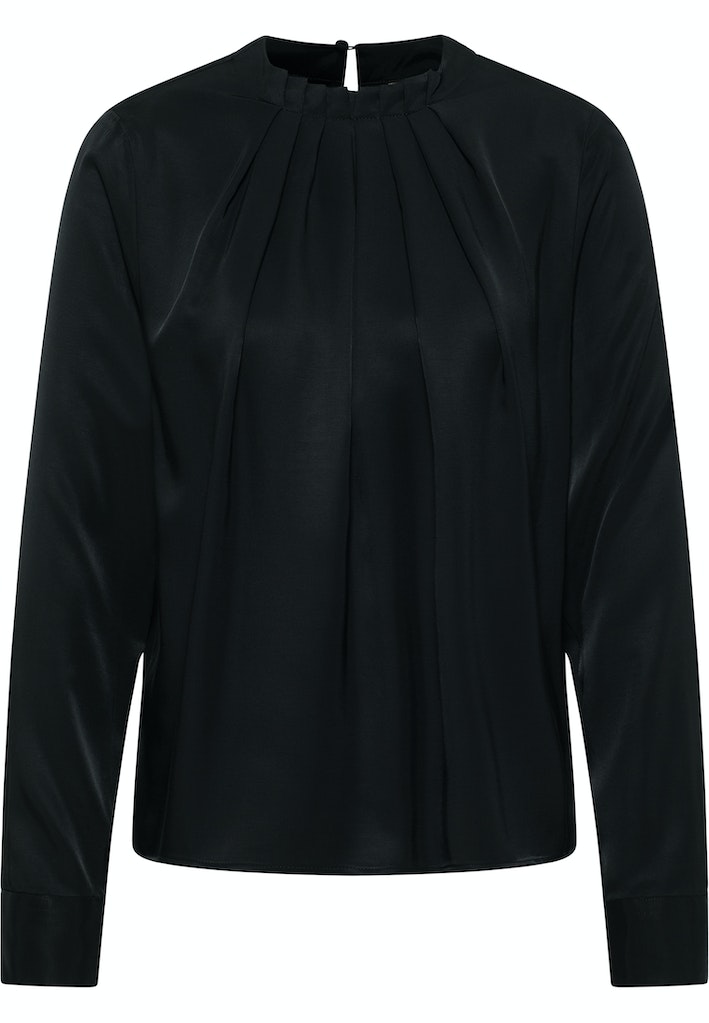 Die eingelegten Falten am Rundhals-Ausschnitt sind nicht nur ein schöner optischen Effekt, sondern dienen auch dazu, dass diese Bluse einen besonders schönen Fall erhält.
