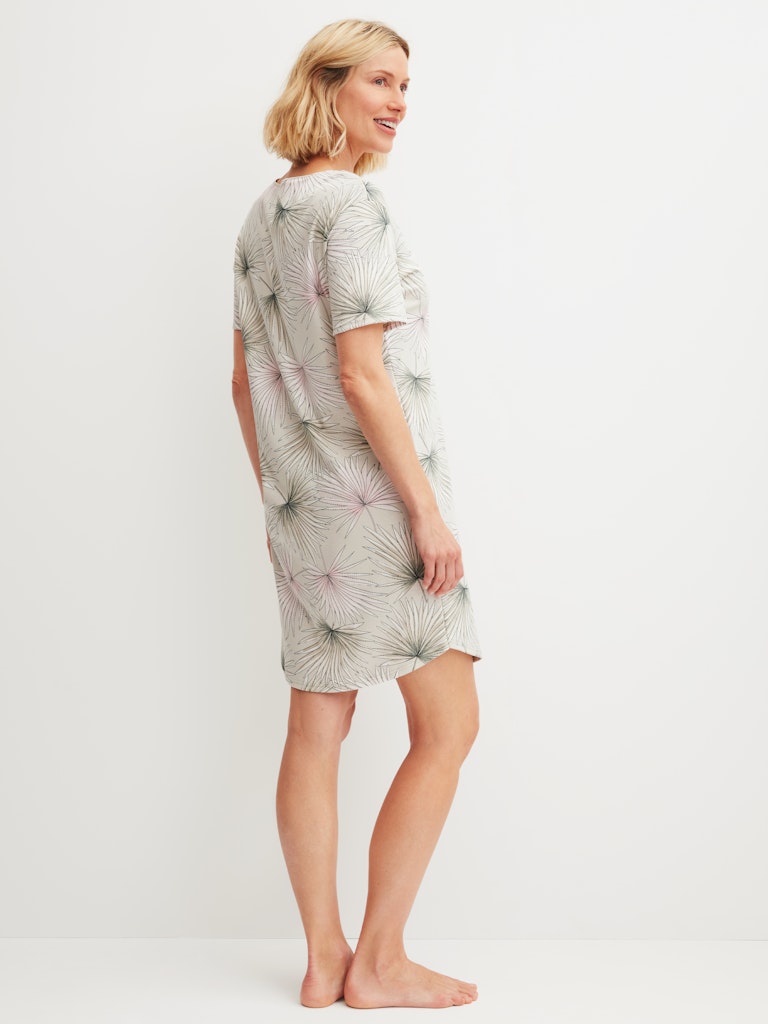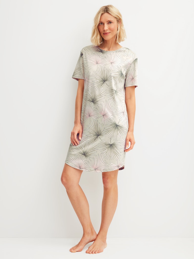Swiss Cotton® interlock made from fine Pima cotton|smooth texture with elegant drape|relaxed fit for maximum comfort|subtle leaf print with feminine charm|easy-care and shape-retaining