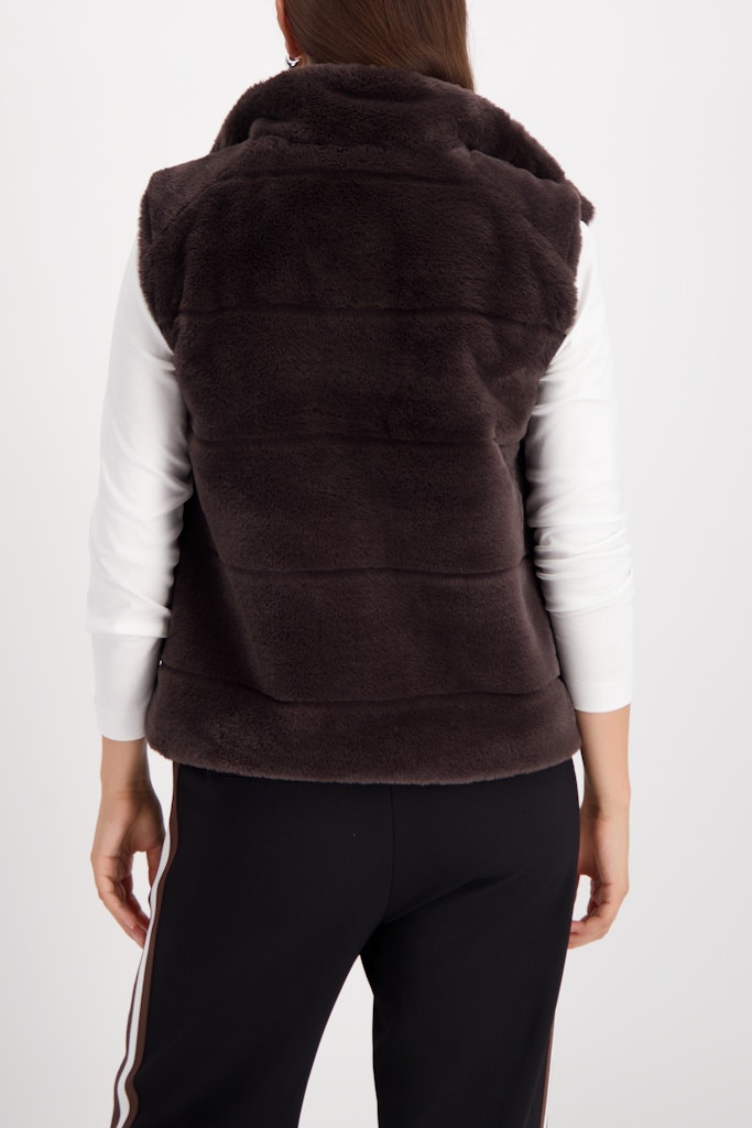 Eine flauschige Weste mit Stehkragen und seitlichen Eingrifftaschen.
