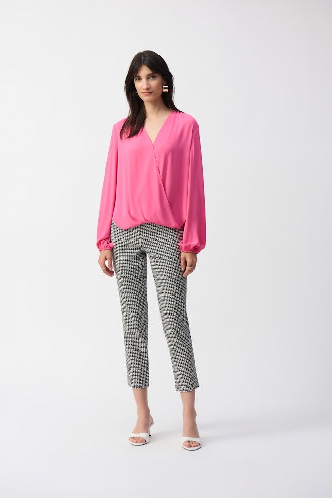 Genießen Sie den puren Komfort dieses zeitlosen Georgette-Oberteils. Der exquisite Wickelausschnitt und der locker fallende Saum verleihen der Boxy-Silhouette des Shirts seinen besonderen Charakter. Die langen Puffärmel wirken dezent elegant.