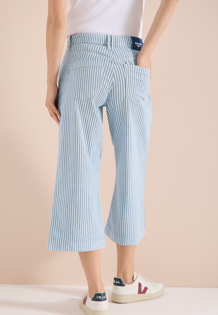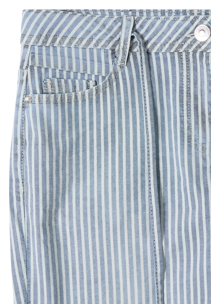 Die Flared Leg Jeans von CECIL für Damen im Style Neele setzt mit ihrem Streifenmuster modische Akzente. Die Flared Legs werden zum Saum hin weiter und sorgen für eine feminine Silhouette mit lässigem Loose Fit. Die High Waist Passform sitzt angenehm, während das Bänderdetail am Bund den Look besonders macht. Der klassische 5-Pocket-Style und die Baumwollqualität machen die Denim Hose bequem und alltagstauglich. Denim Hose Loose Fit Flared Legs High Waist Streifenmuster Material: 98% Baumwolle, 2% Elasthan
