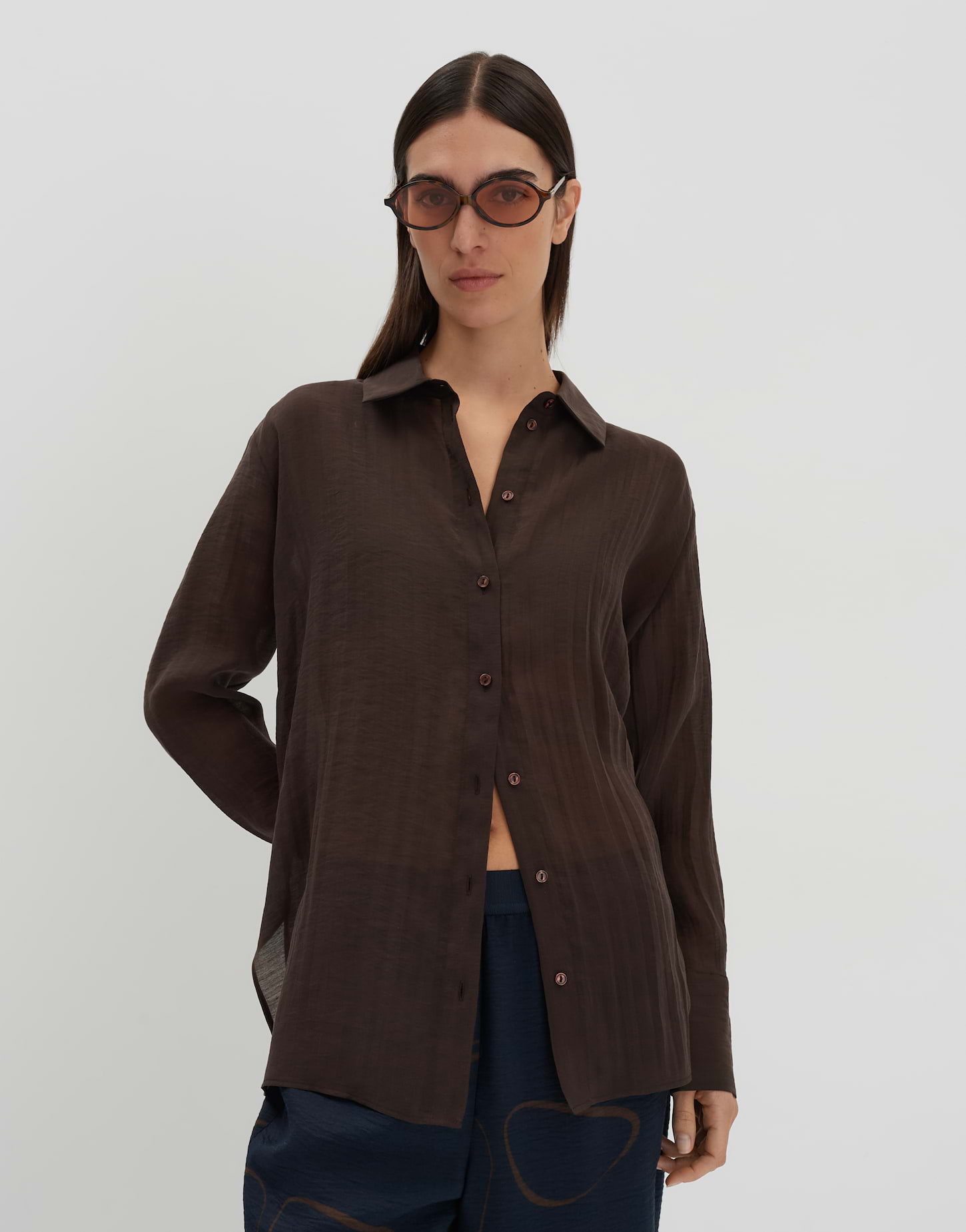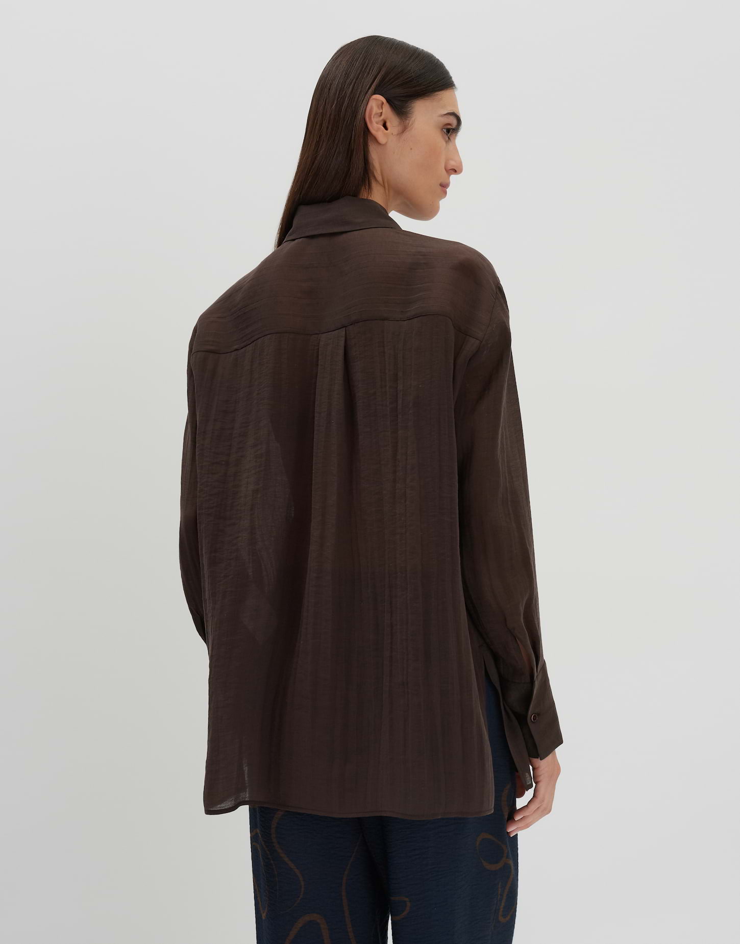 lockere Passform, leicht ausgestellt geschnitten, lang geschnitten, Langarm, Hemdblusenkragen, Rückenlänge ca. 72 cm bei Größe 36, Model Größe 177 cm - trägt Größe 36, Webware, leichter Stoff, leichte Transparenz, matter Glanz, Passe mit Quetschfalte im Rücken, lange Knopfleiste, Schlitze in den Seiten, lange Manschetten