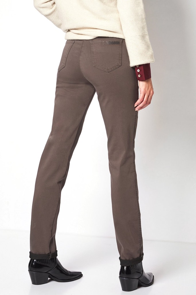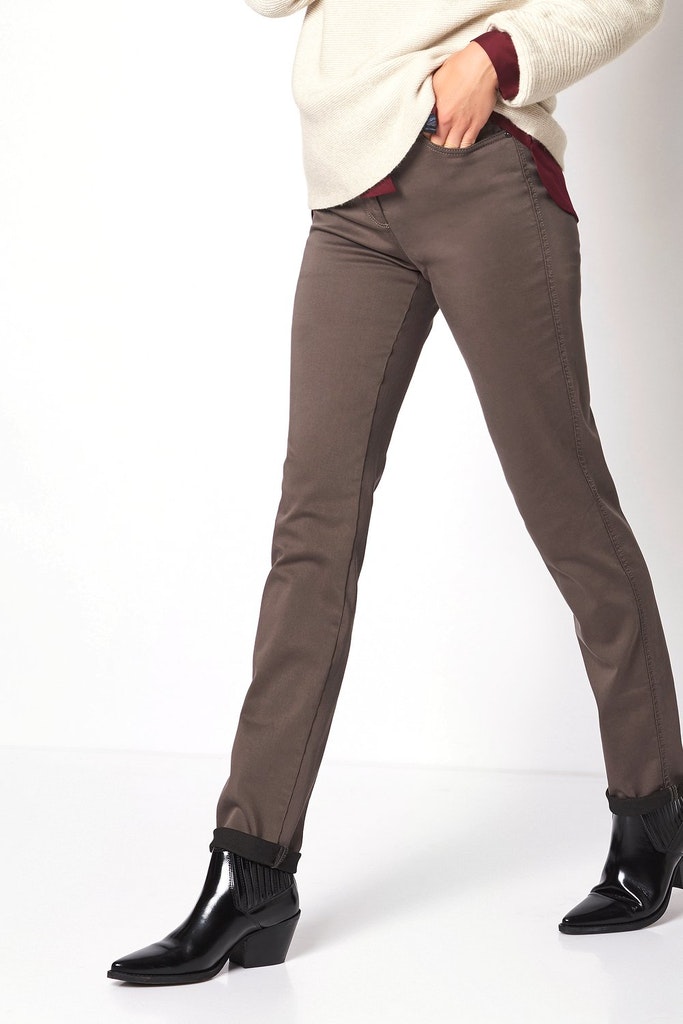 Damenhose be loved - Taupe - Qualität: Perfect-Colour-Satin - Slim Fit-Hose mit schmalem Oberschenkel - Komfortable Taille und höhere Leibhöhe - Elastischer Dehnbund für ein angenehmes Tragegefühl