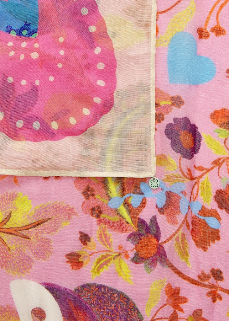 Schal aus reiner Baumwolle mit Blumenmuster und LOVE MOM-Schriftzug