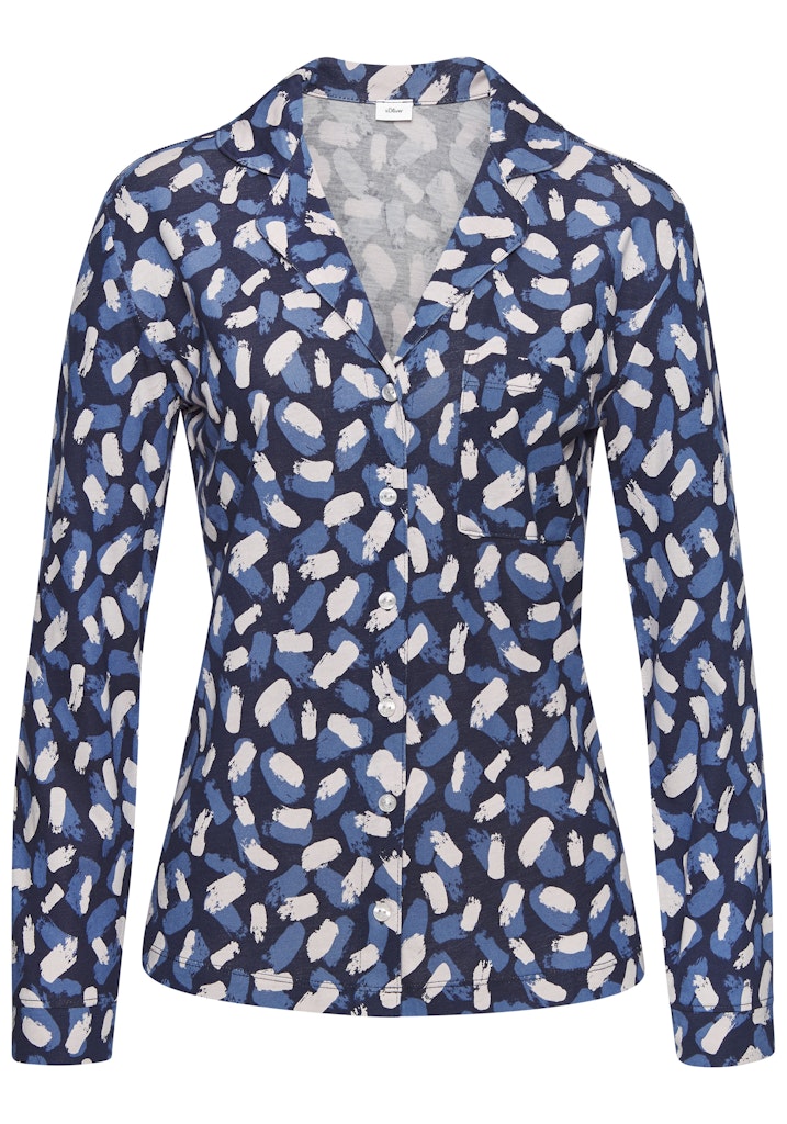 s.Oliver Klassisches Pyjamaoberteil von s.Oliver. Alloverprint. Reverskragen. Durchgehende Knopfleiste. Aufgesetzte Brusttasche. Angenehm weiche Qualität.